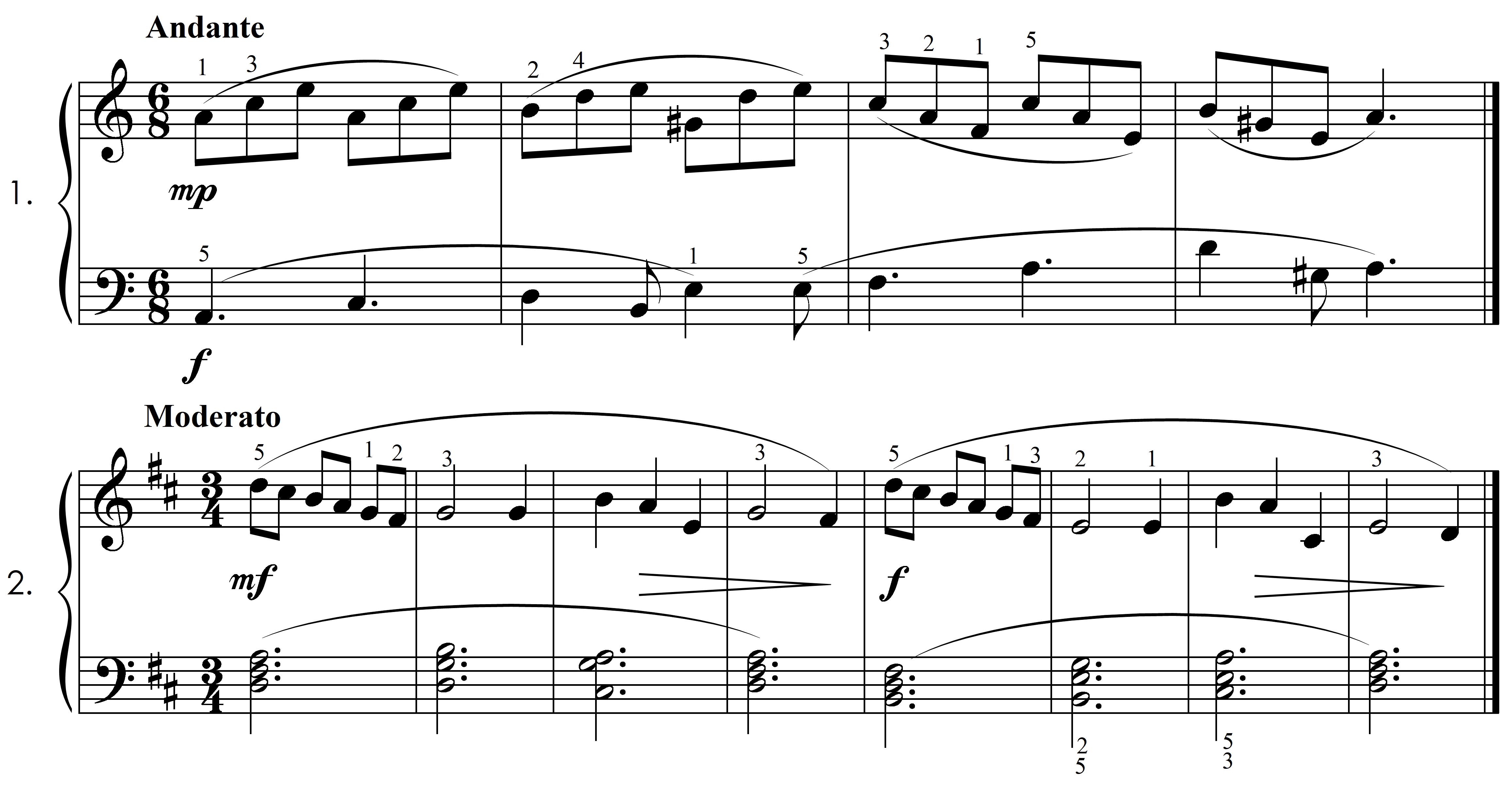- Scan the entire example for intervals, patterns, articulations, dynamics, and tempo.